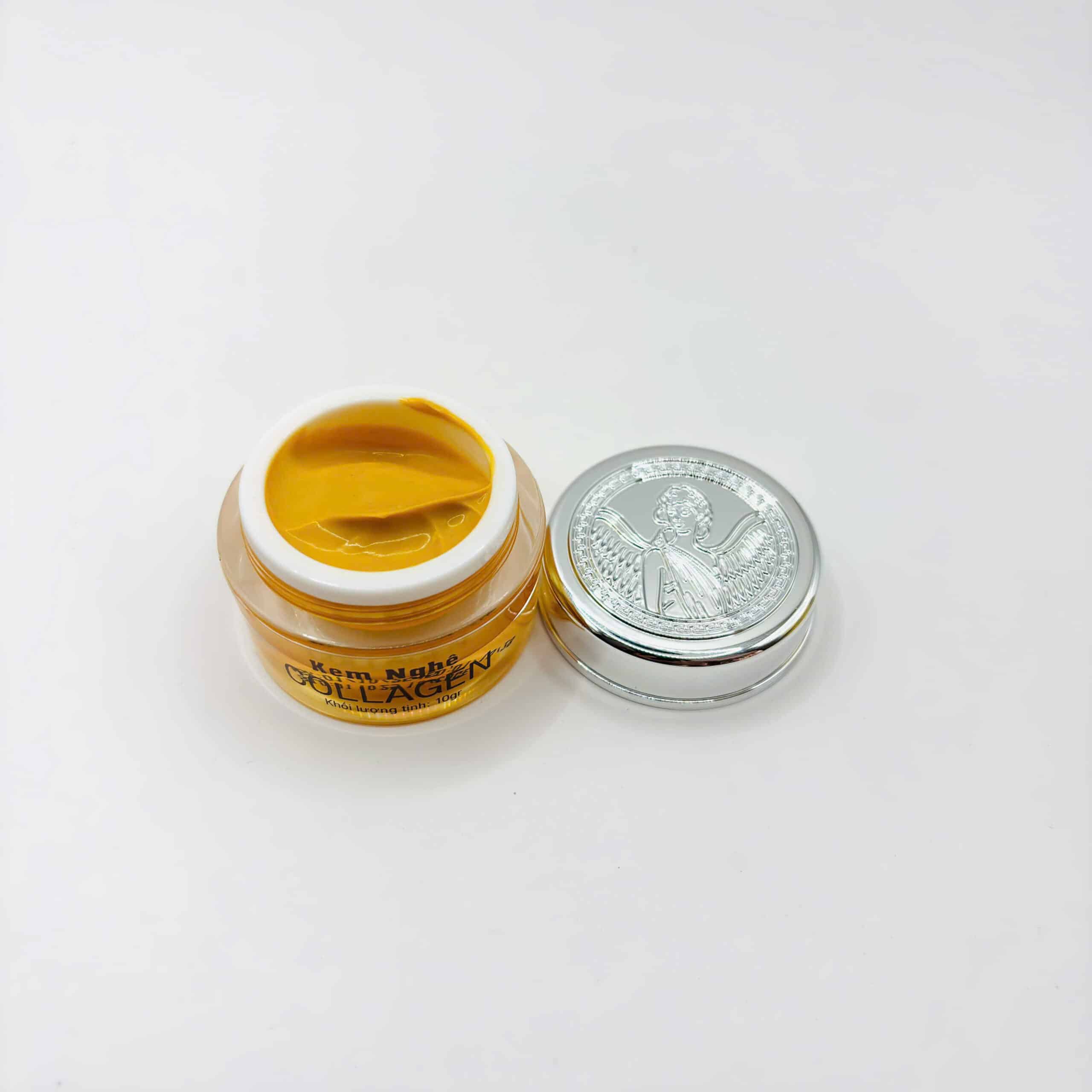 - Kết hợp ưu điểm của nghệ và collagen, phù hợp người có da sau mụn.