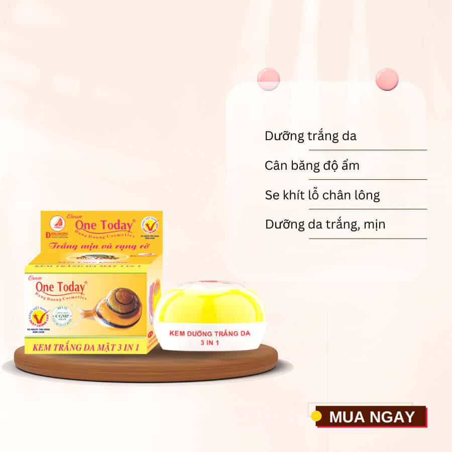 Trong nhịp sống bận rộn hiện nay, nhiều người có xu hướng lựa chọn các sản phẩm chăm sóc da đa công dụng, vừa tiết kiệm thời gian vừa tối ưu chi phí. One Today Trắng Da 3in1 là dòng kem dưỡng da được thiết kế theo tiêu chí đó, giúp người dùng chăm sóc da đơn giản nhưng vẫn đáp ứng các nhu cầu cơ bản như dưỡng trắng, dưỡng ẩm và chăm sóc da hằng ngày.
